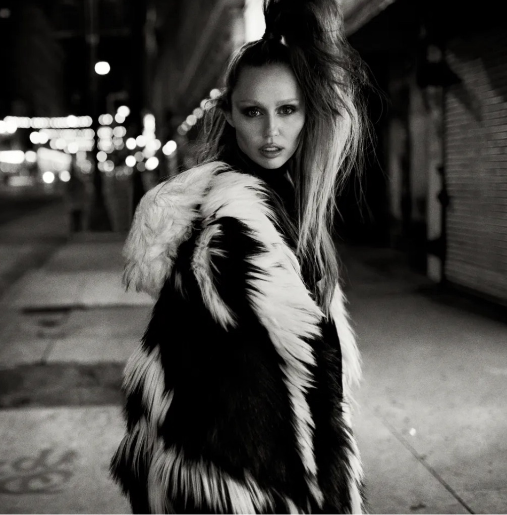 A special component of the project was working with the team at Mugler: Cyrus and Kenneth pulled a variety of archival looks from the iconic French designer. “We actually hold the record for the largest collection of Mugler archives ever sent to a single individual, which is still surreal to say,” says Kenneth. On the album cover, for one, Cyrus sports Thierry Mugler’s “Spider” look from his spring 1997 couture “Les Insects” collection. “Manfred was inspired by the way morning dew glistens on a spiderweb,” says Kenneth. “It’s a piece that marries fragility and strength in such a beautiful way, which felt perfect for this project.”